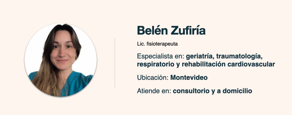 ¡Hola! Soy Belén, fisioterapeuta egresada de la Universidad de la República (Udelar) y especializada en fisioterapia respiratoria y rehabilitación funcional para adultos mayores.