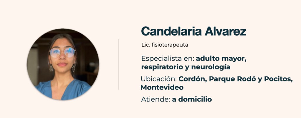 Soy Candelaria, licenciada en fisioterapia, con especialización en el tratamiento de adultos mayores, fisioterapia respiratoria y neurológica.