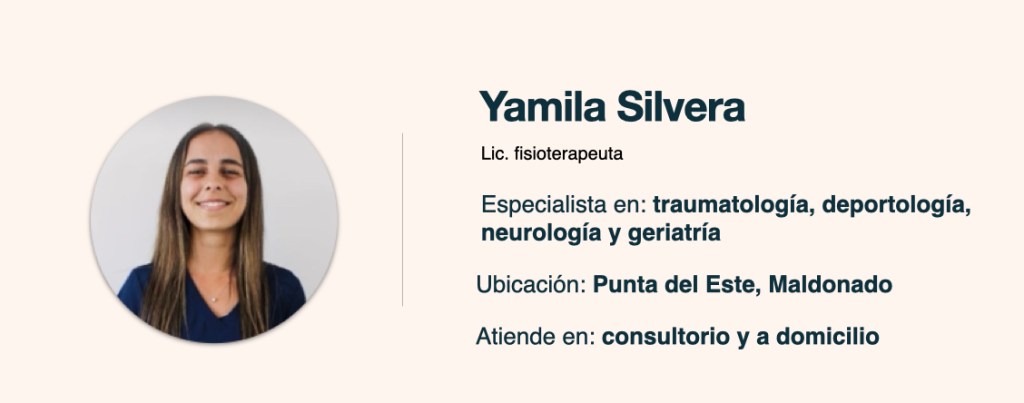 Soy Yamila Silvera, Licenciada en Fisioterapia especializada en Traumatología, Geriatría, Neurología y Deportología.